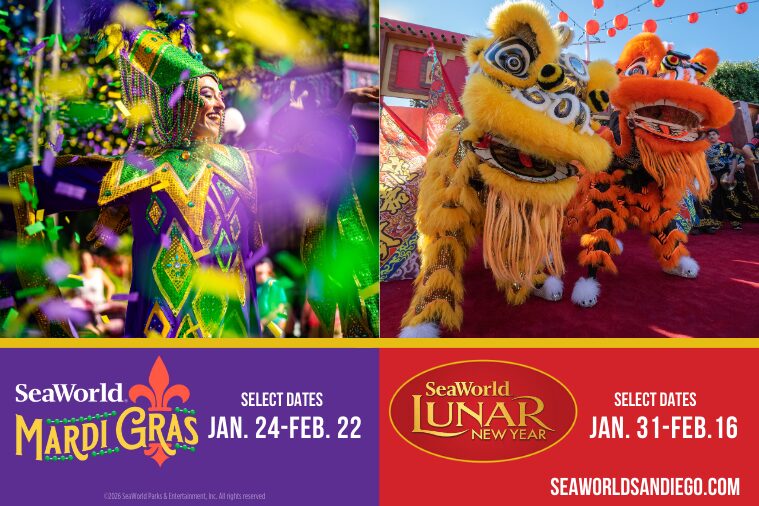 Ring in the year with Lunar New Year at Seaworld San Diego with all-new celebrations with eight days of festive performances, vibrant décor, and traditions that honor energy, optimism, independence, and new beginnings. Happening Saturdays and Sundays, January 31–February 16, with bonus celebrations on Friday, February 13 and Monday, February 16. Feel the power of the taiko drummers, experience the excitement of the lion dance, and feast on the delicious flavors of traditional Korean and Chinese foods. Don’t forget to pick up your red envelope filled with surprises to welcome a year of momentum and good fortune.