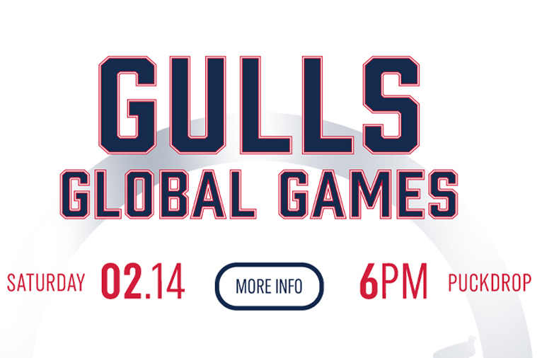 Gulls Global Games is coming to Pechanga Arena on Saturday, February 14th as the San Diego Gulls take on the Bakersfield Condors at 6pm. Celebrate the spirit of international competition with an Olympic-themed night on and off the ice. We will also be wearing a specialty Gulls-themed Team USA jersey on the ice for the entire game.